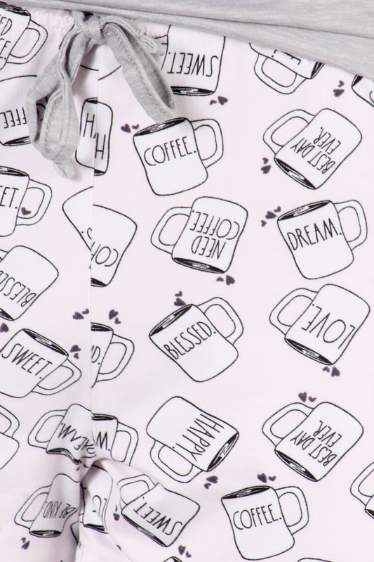 Women's "RUNS ON COFFEE" Short Sleeve Shirt and Dolphin Shorts Soft Pajama Set