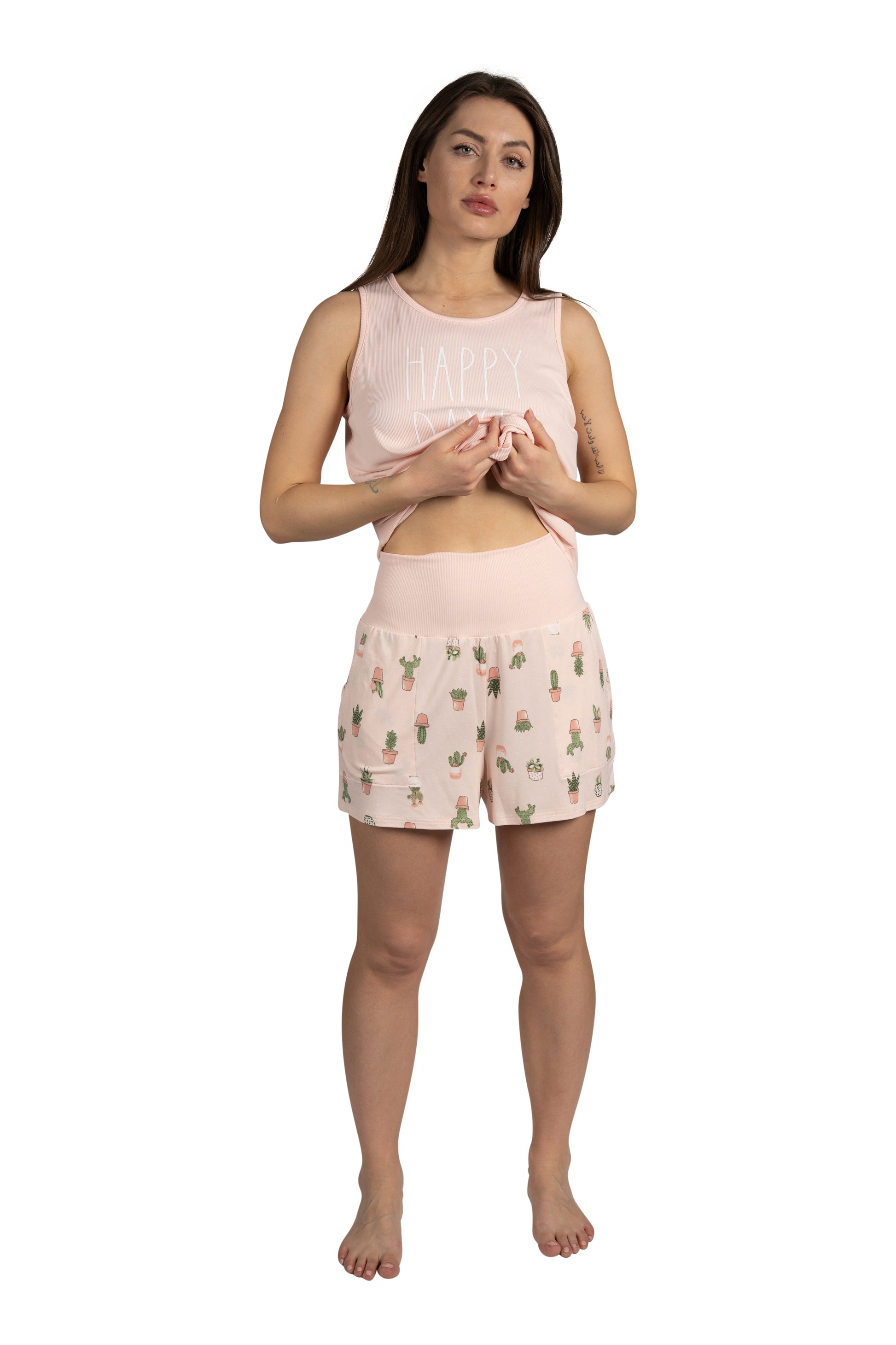 RAE DUNN Women's Ribbed Tank Top and Foldover Waistband Shorts PJ Set HAPPY DAYS Succulent New