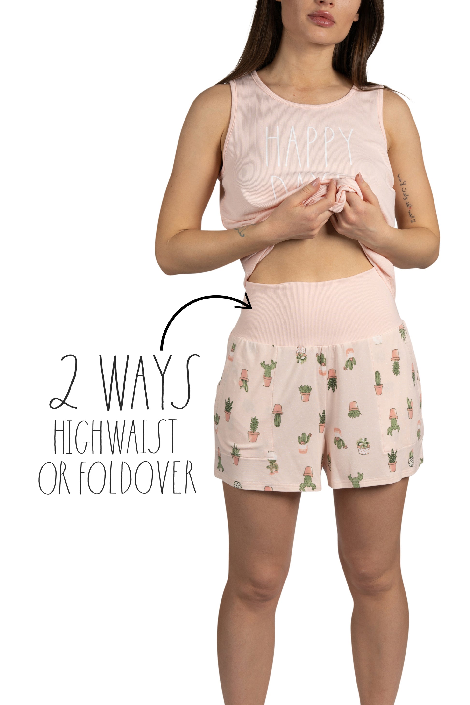 - Pull-On Shorts: The comfortable pull-on shorts with elastic waistband and pockets offer an easy and relaxed fit. Wear two ways: Fold over the waistband or wear high waisted! Approximately 3in inseam.