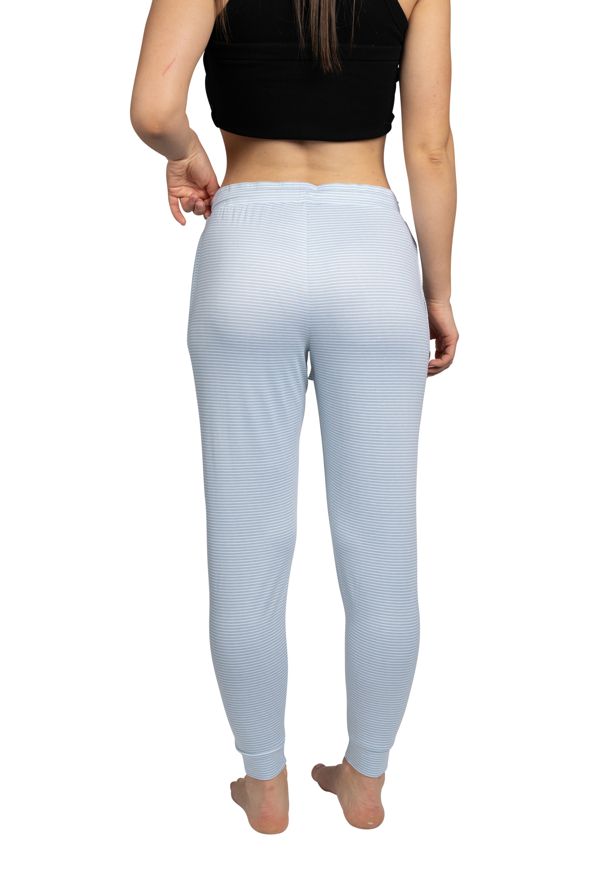 RAE DUNN Women's Jogger Pants with Pockets and Drawstring Recycled Pant NEED COFFEE Striped Blue New