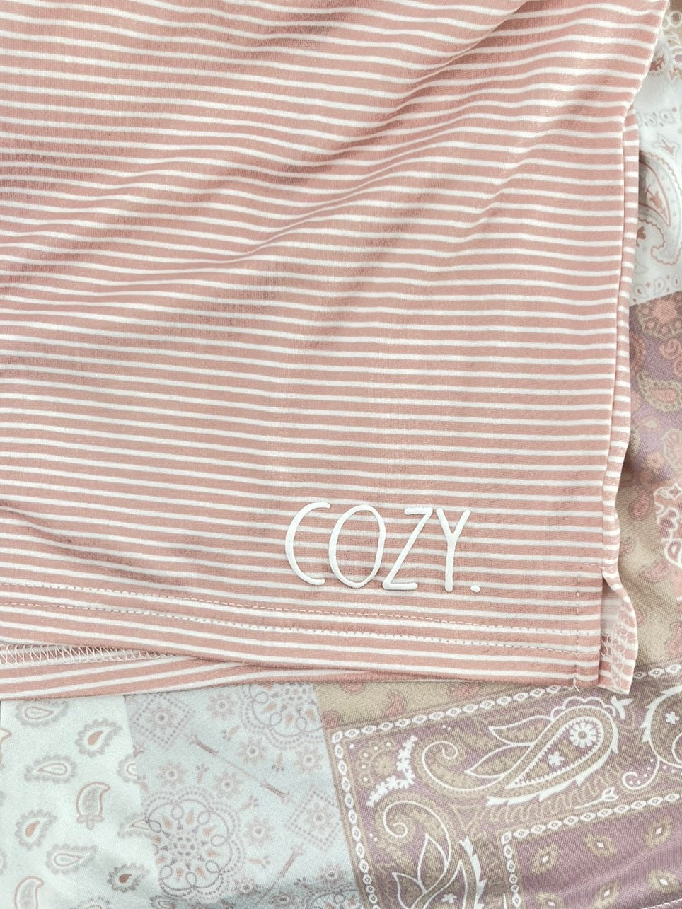 RAE DUNN Women's 2-Pack Drawstring Shorts Recycled Short Mixed Paisley and COZY Mini Stripe New